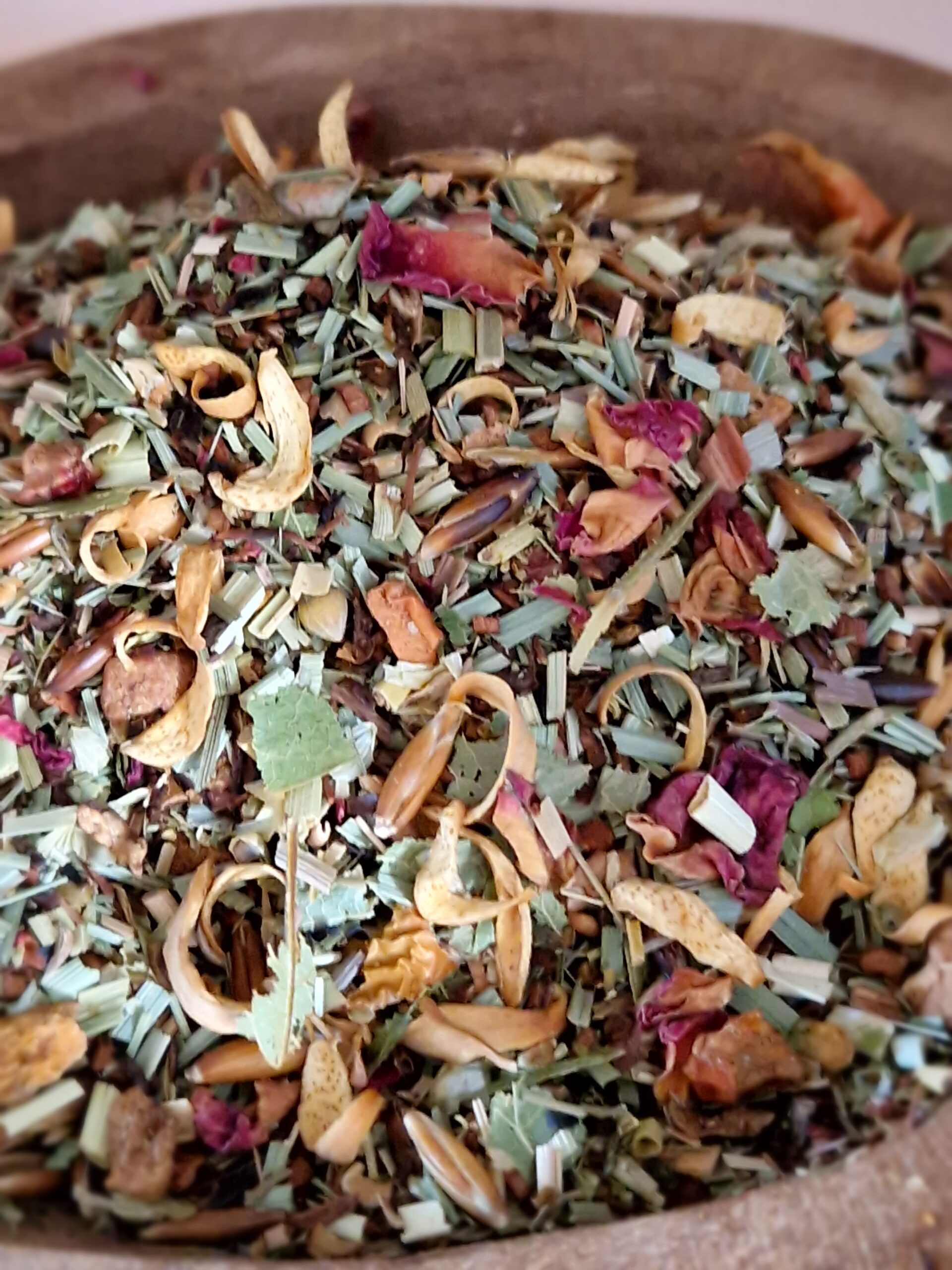 Composition : Tilleul argenté, avoine, fleurs de houblon, pétales de rose, pétales d’oranger, morceaux de pomme, honeybush, citronnelle, arôme naturel de miel.